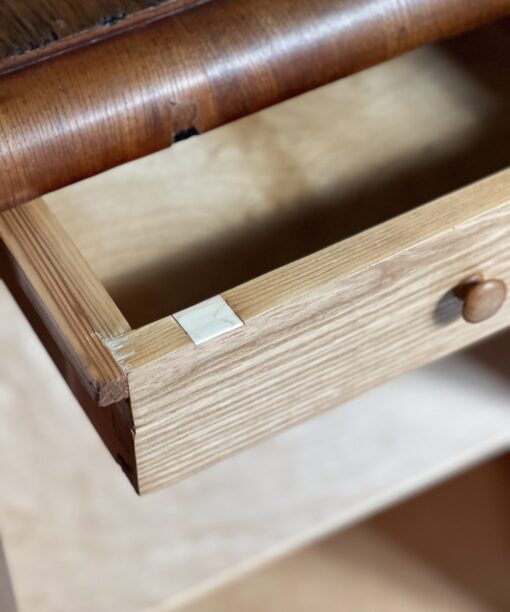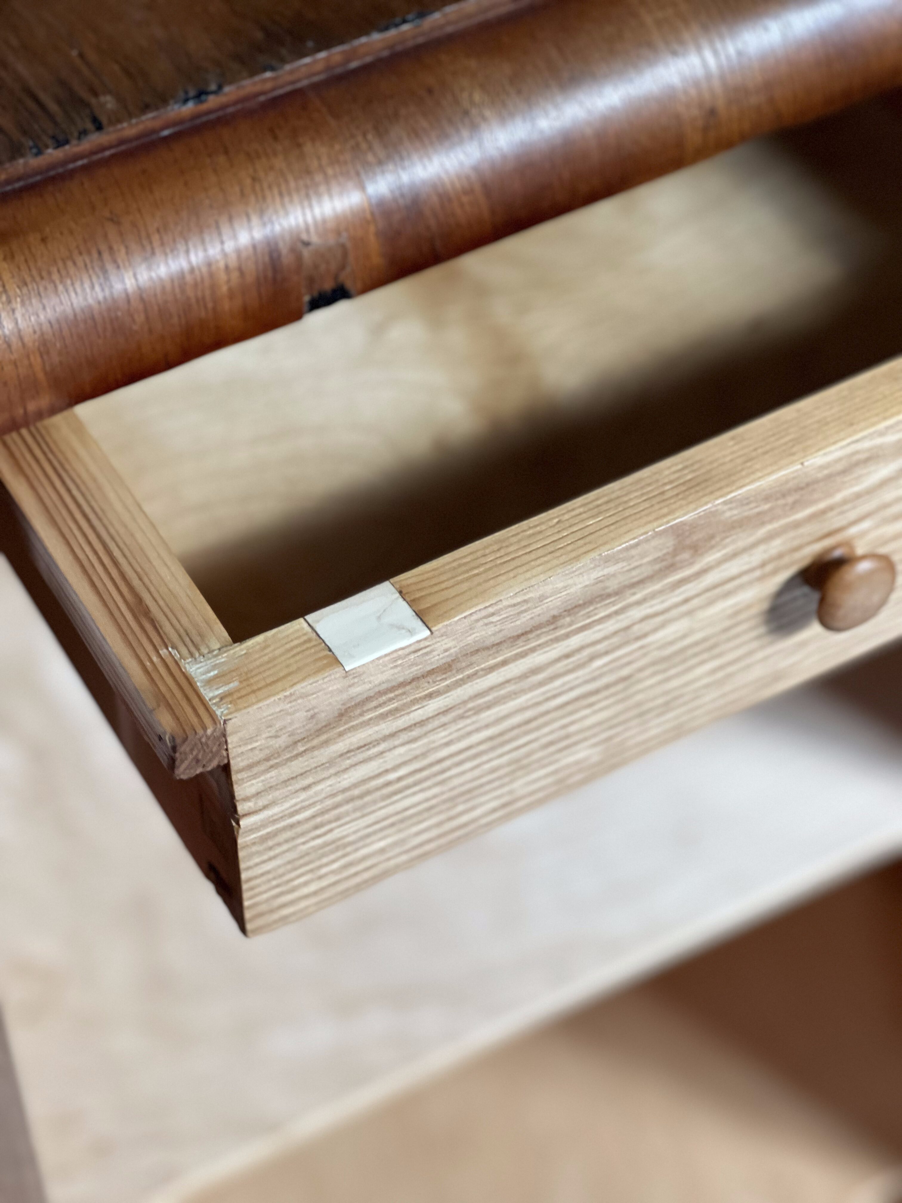 Поличка, дно і задня стінка - замінені, а шухлядка для зберігання дрібних речей- рідна. Всередині тумбу також покрили олією