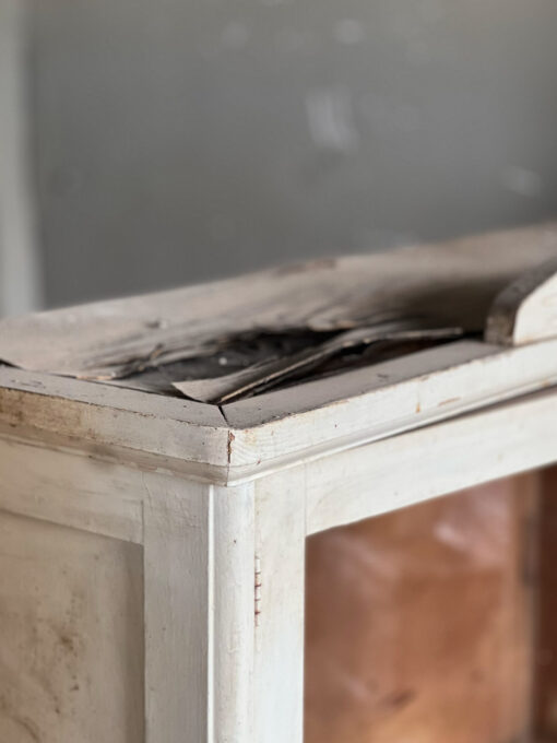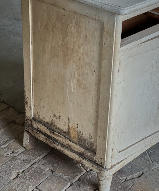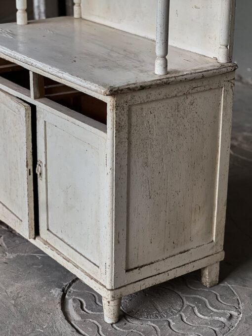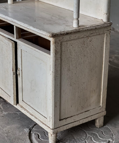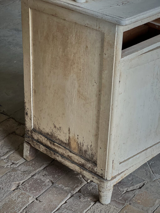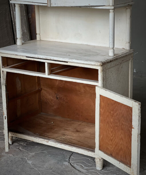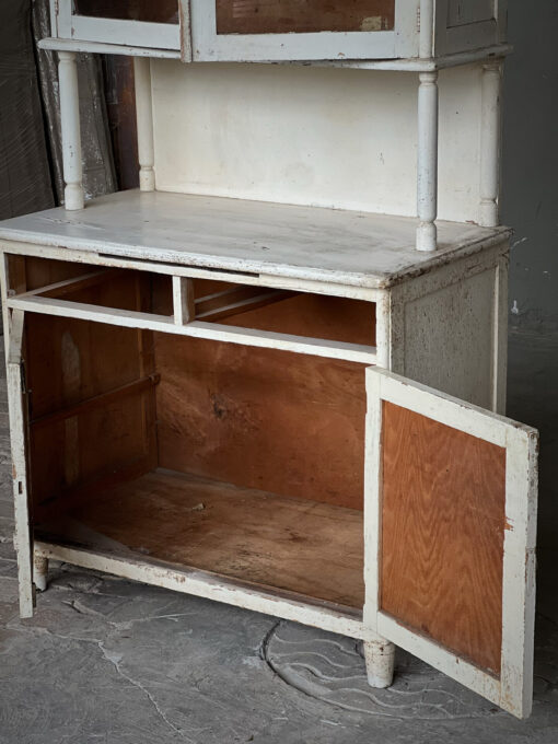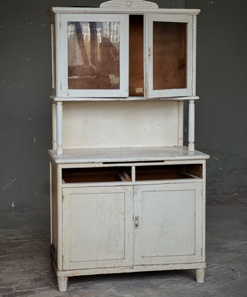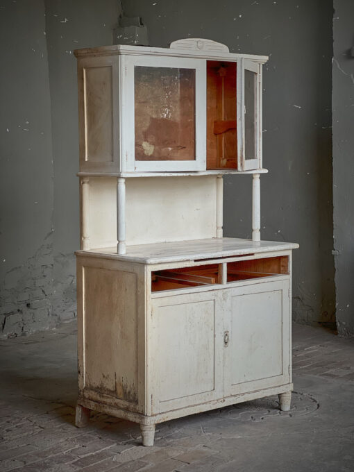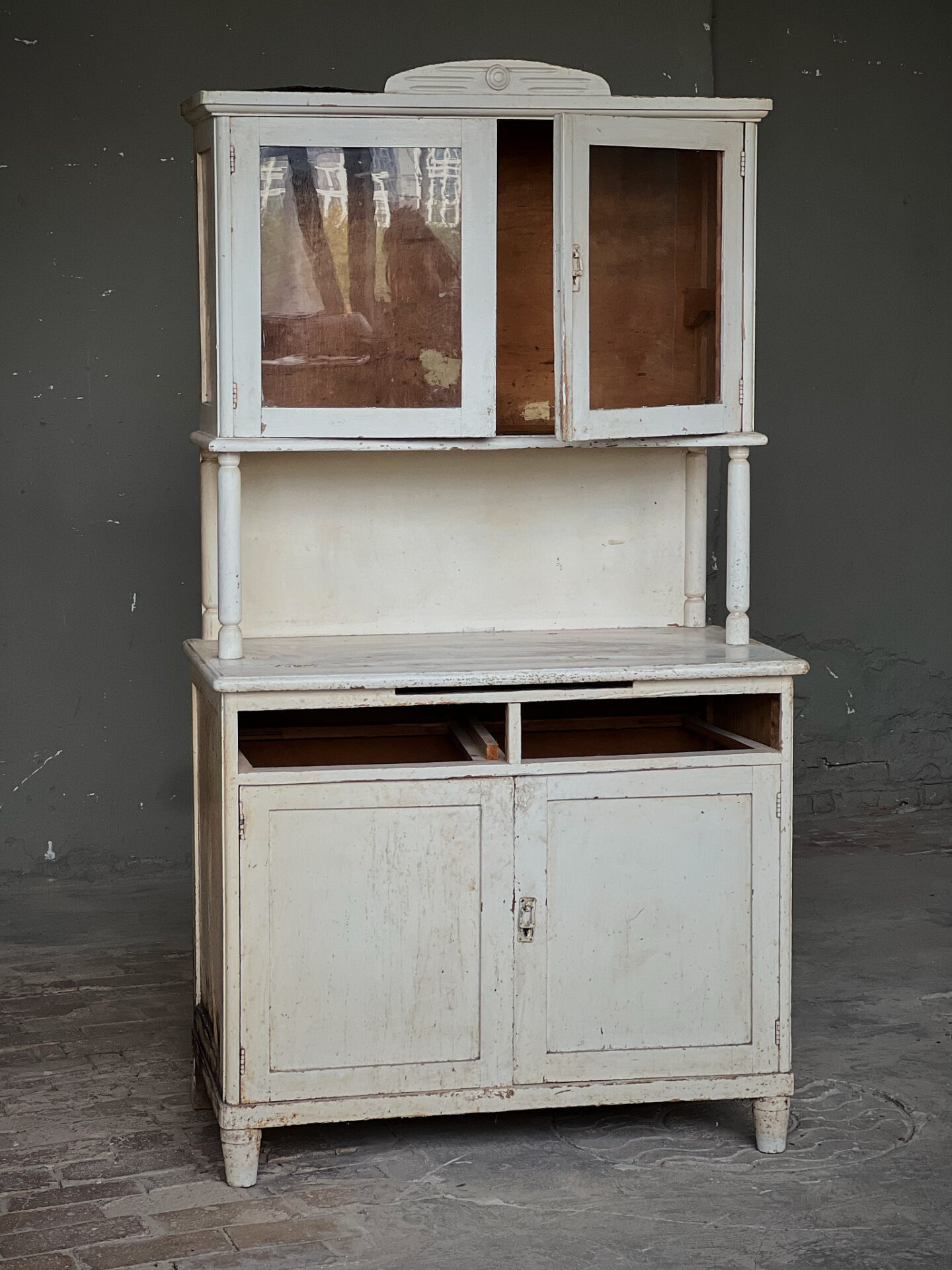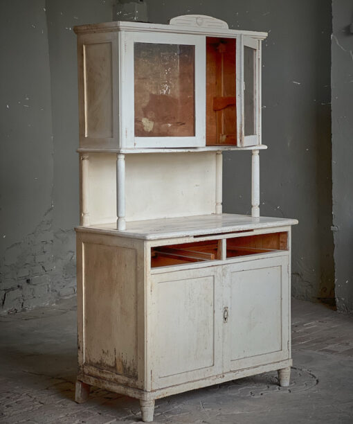 Креденс з маленькою короною на акуратних ніжках. Нажаль, шухляди були втрачені, але для нас не буде проблемою зробити нові - реставруємо, враховуючи всі ваші побажання. На останньому фото приклад схожого креденсу, який ми реставрували для ресторану.